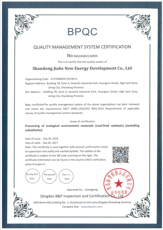 應用HS環(huán)保節(jié)能燃煤催化劑時,可以使灰渣中的CaO與SO3反應生成 CaSO4,進而生成硫鋁酸鈣達到提高脫硫效果的作用。在使用石灰石脫蔬的情況下先期添加本催化劑,會起到協同作用,促進石灰石分解,減少石灰石的用量。